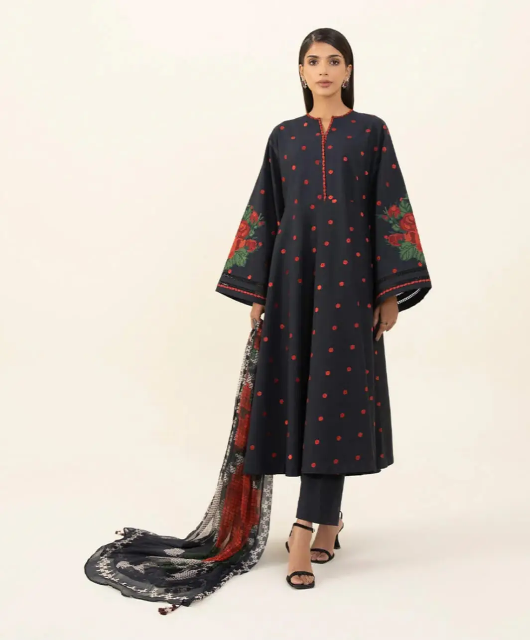 UNSTITCHED 3-PIECE EMBROIDERED CAMBRIC SUIT