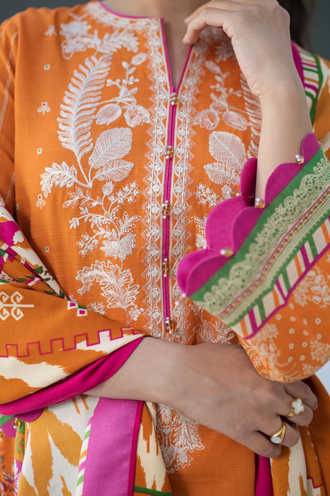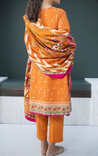 Orange Embroidered Shirt Shalwar Shawl Khaddar WUW23E30834 suit – Winter Collection 2024V-3 – Zellbury